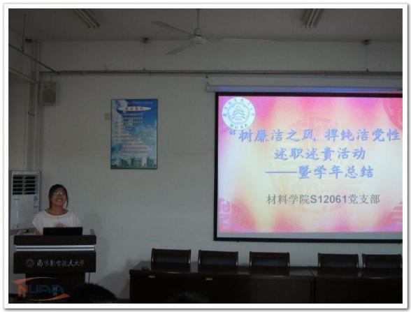 6月5日晚,肉漫画 2012级研究生1党支部在将军路校区材料楼举办了“树廉洁之风,捍纯洁党性——提升研究生党员政治素养”述职述责活动。活动由支部书记马遗萍主持,全体支部党员和积极分子以及兄弟支部的支委会成员参加了本次活动。活动中积极分子和正式党员分别从“为什么”和“怎么样”两方面阐述了研究生党员对纯洁性的看法,并针对本学年“反腐倡廉漫画展”、“党员入党后再教育”、“反腐倡廉,以案说法”等系列活动进行总结反思,对支部的发展提出了合理建议。