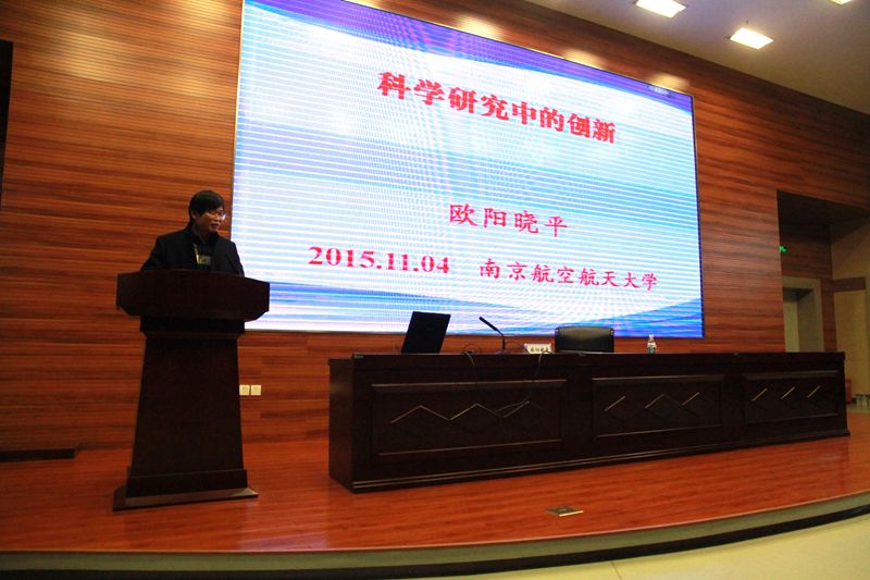 欧阳晓平院士以一首戴望舒的《雨巷》开头,生动地描述了科研路上的想要达到的目标和遇到困惑之间的矛盾,并引用美国物理学家亨利·奥古斯特·罗兰在美国科学促进会年会上发表的演讲——《为纯科学呼吁》加以说明。他就创新动力与内涵本质、创新关键环节、学术前沿和未来需求等方面进行了详细地论述。欧阳晓平院士还结合他本人的积累阶段工作、攻关阶段工作、系统创新阶段工作及前沿探索的研究工作强调了创新思维的重要性。本次报告讲述生动,气氛活跃,采用图文并茂、动画结合等方式进行讲述,大大激发了师生不断创新、献身科研的热情。