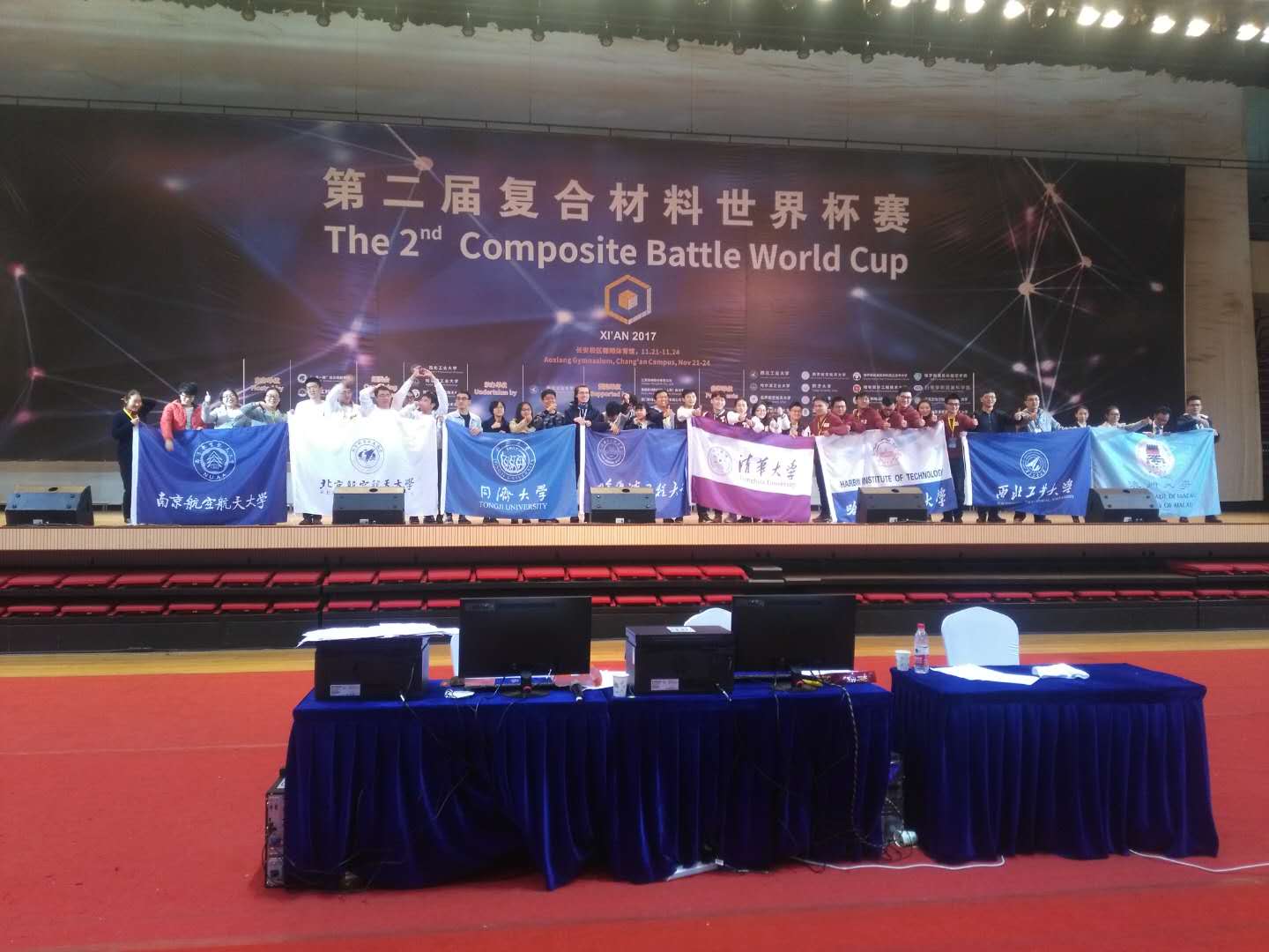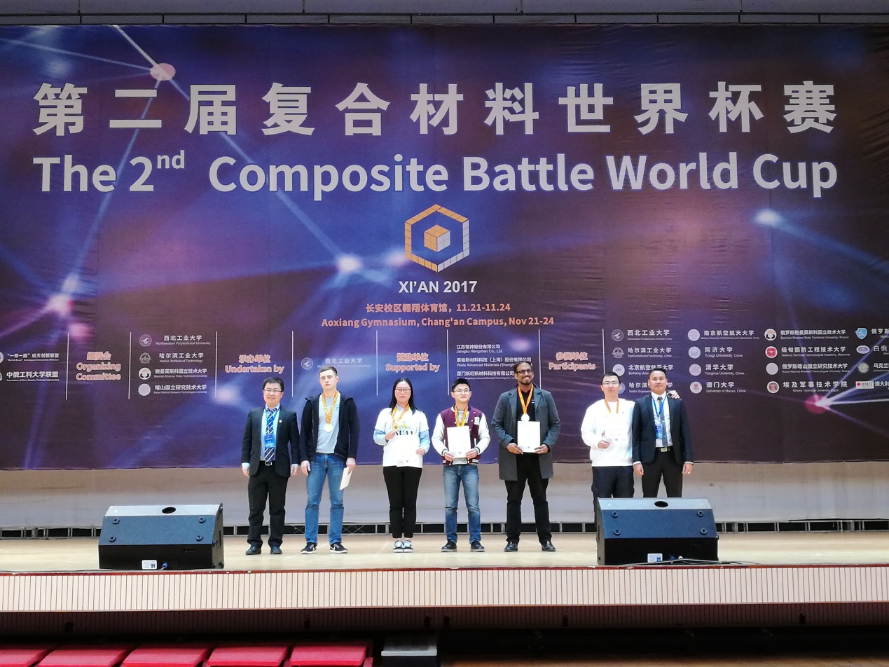 2017年11月20-24日,第二届复合材料世界杯赛开幕式在西北工业大学长安校区翱翔体育馆举行。由我校国际合作交流处组织,肉漫画 2016、2014级研究生以及指导老师姚正军教授、顾冬冬教授和周金堂老师组成的NUAA.VARIer参赛团队参加了比赛并获得优异成绩。