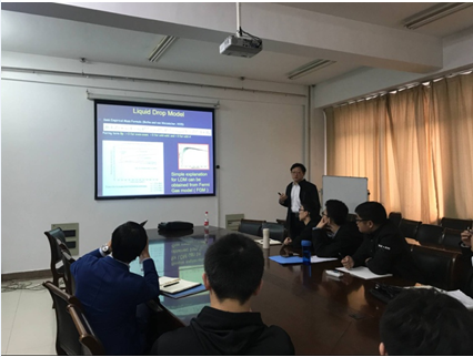 孟杰教授以原子核物理的研究对象,原子核的独特魅力,核物理与日常生活,黄金为什么比铁贵等为切入点,对原子核物理领域的知识作了条理分明的报告,报告内容丰富、生动、精彩,对肉漫画 师生的研究具有很大的启发作用。报告持续了约两个小时,汇报期间,与会师生与孟杰教授进行了充分的交流与讨论。