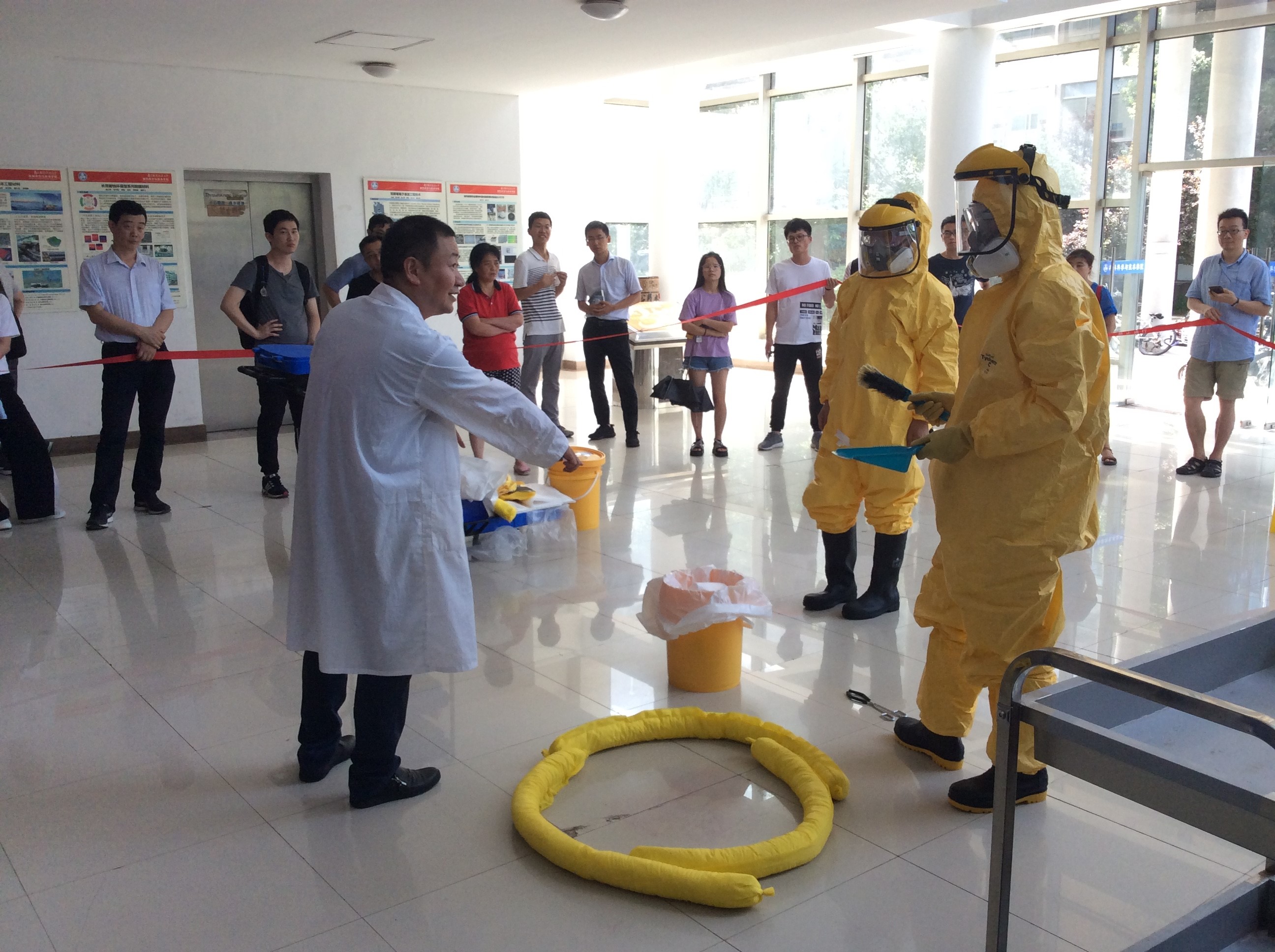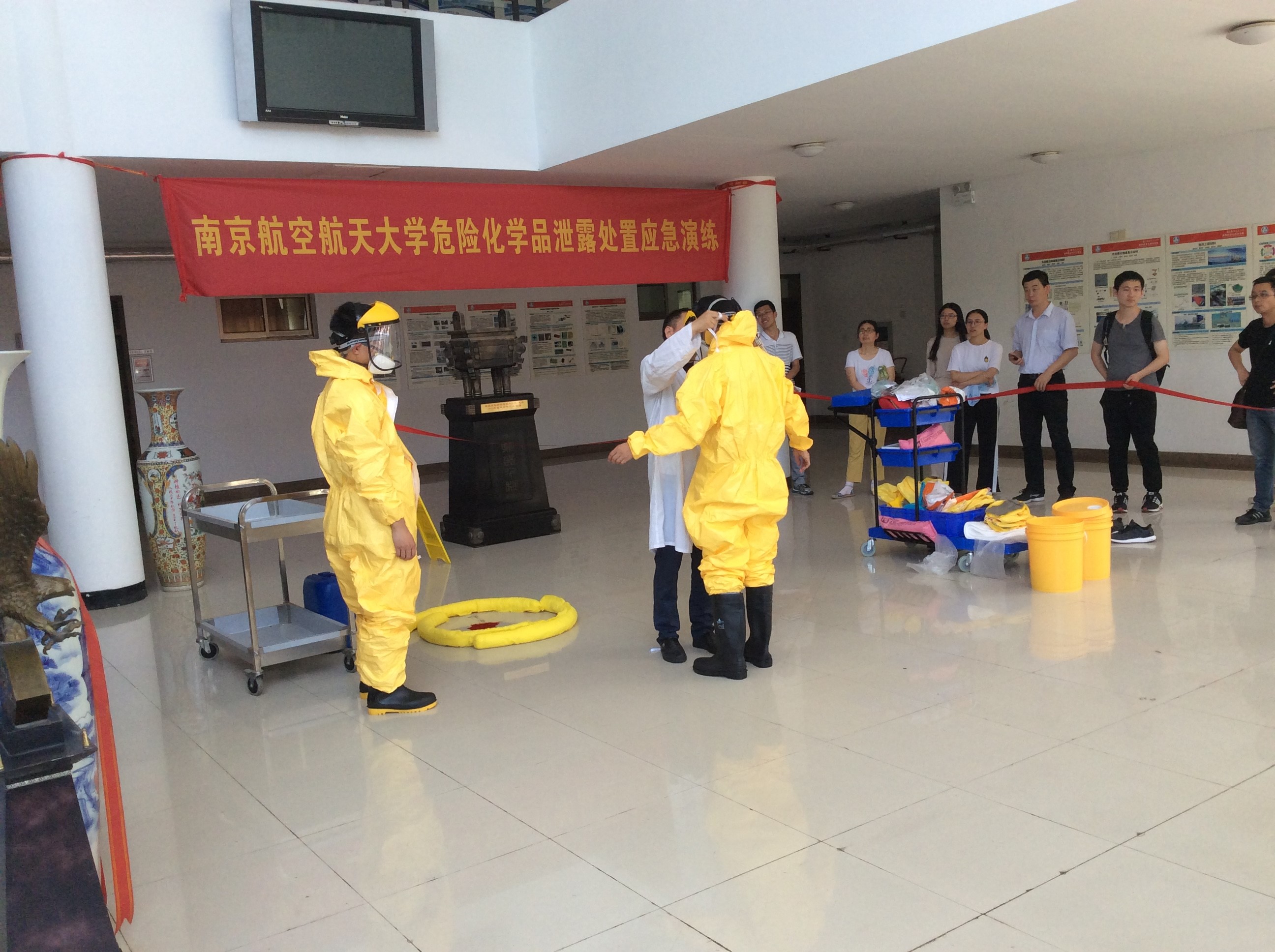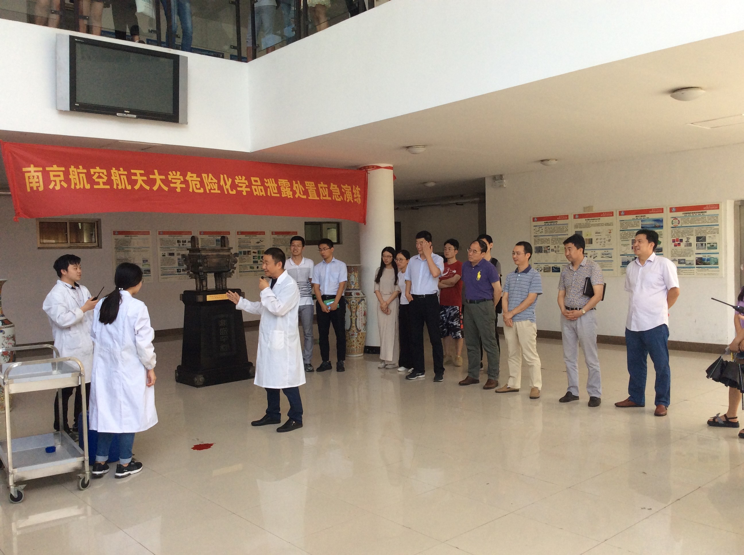 为贯彻落实教育部办公厅《关于开展教育系统2018年“安全生产月”和“安全生产万里行”活动的通知》,为提高广大师生应对危险化学品安全使用认识和危险化学品突发事故的应急处置能力,2018年6月26日下午,由国有资产管理处、肉漫画 联合举办,赛弗安全全程助力的“南京航空航天大学大学危化品泄漏应急演练”在将军路校区肉漫画 举行。肉漫画 、航空宇航学院、能源与动力学院、机电学院、航天学院、物资供应中心等涉及危险化学品使用的单位组织相关教职工和学生代表约100人参加了本次培训。肉漫画 党委书记孙占久、院长姚正军、副院长汤晓斌、院长处理陶海军,国有资产管理处副处长阎志军出席了培训会。