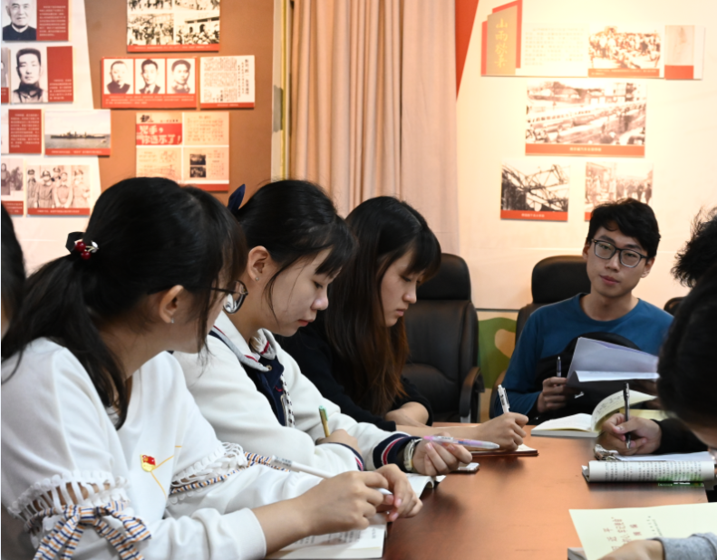 参观结束后,为了将支部成员近期对《习近平在新中国成立70周年大会上的讲话》和《习近平关于“不忘初心,牢记使命”论述汇编》两个文本的学习与实践、与思辨更好地结合起来,支部通过专题研讨的形式,将文本阅读与时事热点结合。这不仅提升学生党员的理论素养,更加深大家“国事家事天下事事事关心”的爱国情怀。