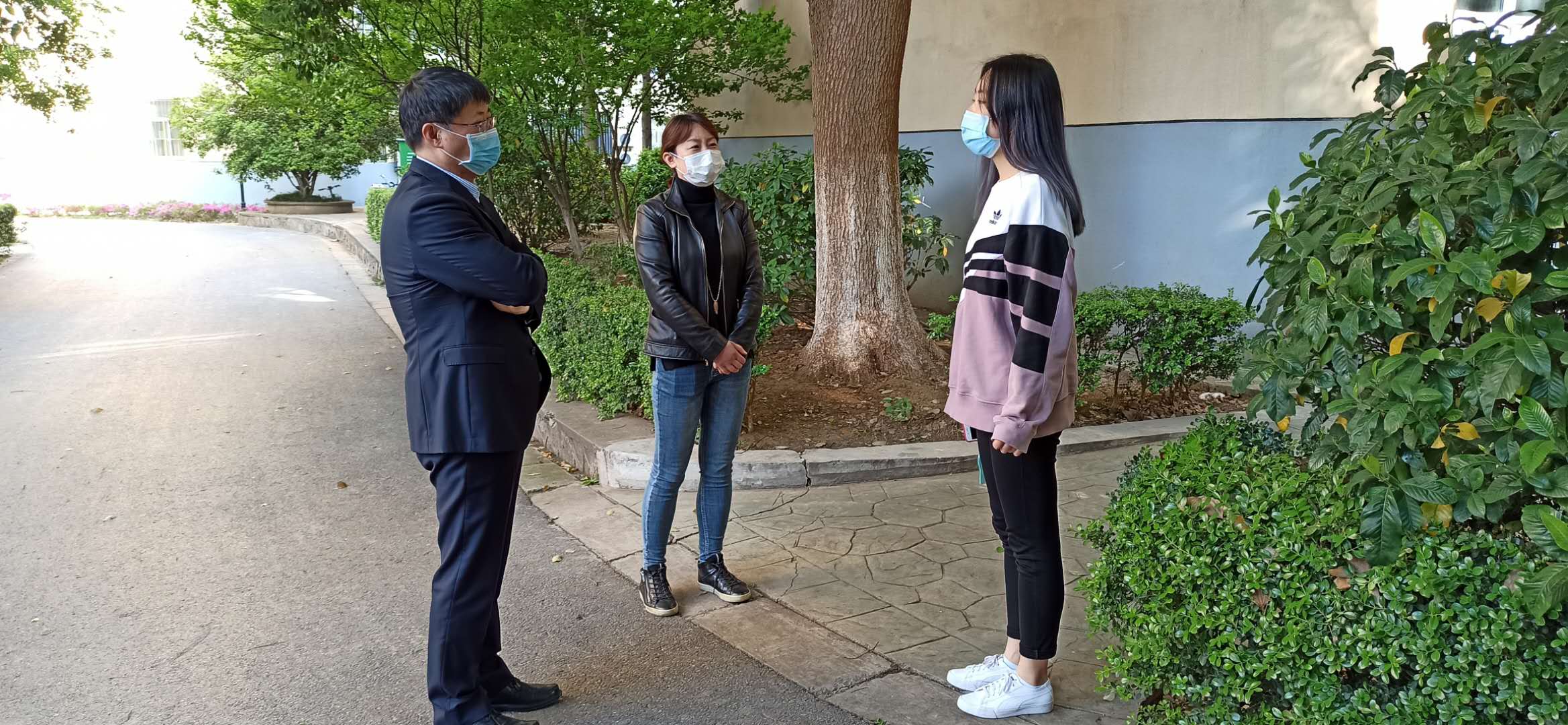 4月23日至26日,学院迎来了2020年春季学期返校的硕士与本科毕业生,学院党委书记孙占久、院长张校刚、党委副书记许赞、副院长陶海军亲自于校门口、学生宿舍楼下迎接归来学子,实地慰问学子们的归途情况。学院辅导员钟佳、龙鑫曦明、杜海泉共同参加。