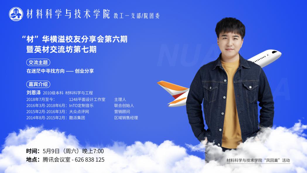 5月9日,肉漫画 举办“材”华横溢校友分享会第六期暨英才交流坊第七期活动。本次分享会由教工一支部、院团委联合主办,邀请到创业成功的2010级本科生校友刘恩泽进行线上分享。学院教工一支部书记潘蕾主持了分享活动并代表学院聘请刘恩泽为校友导师。