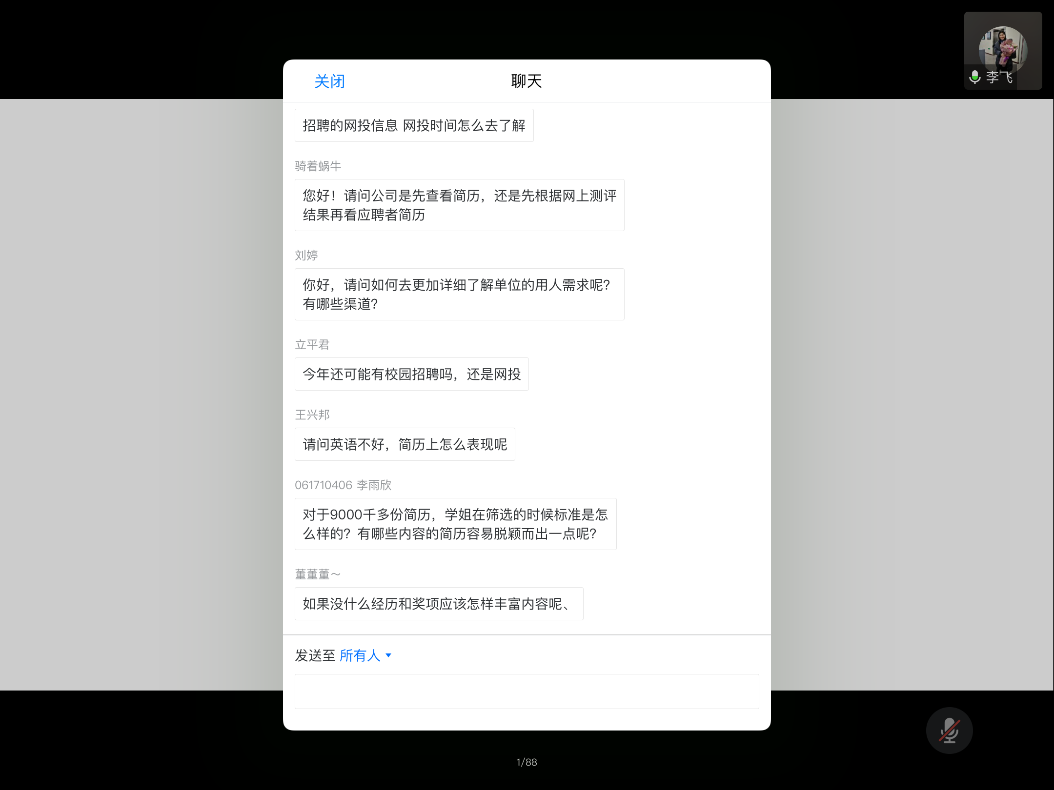 5月27日下午16点,一场线上“简历制作技巧培训”讲座拉开了训练营的序幕。本次讲座邀请到艾欧史密斯(中国)热水器有限公司校园招聘项目经理马倩倩作为主讲人,辅导员钟佳、邱禄芸老师与近三百名研究生及本科生参加。