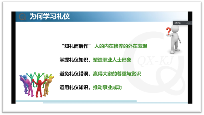 随后,李栋梁表示“学礼仪就是要有修养、有目标、有方针”,并为大家讲解了职场中的会面与接待礼仪。在讲解中,同学们了解到在会面过程中,问候、称呼、介绍、握手、名片等小细节均有大讲究。而在接待他人时,也应注意乘车座次、行路礼仪、用餐礼仪、电梯礼仪等礼仪要点。