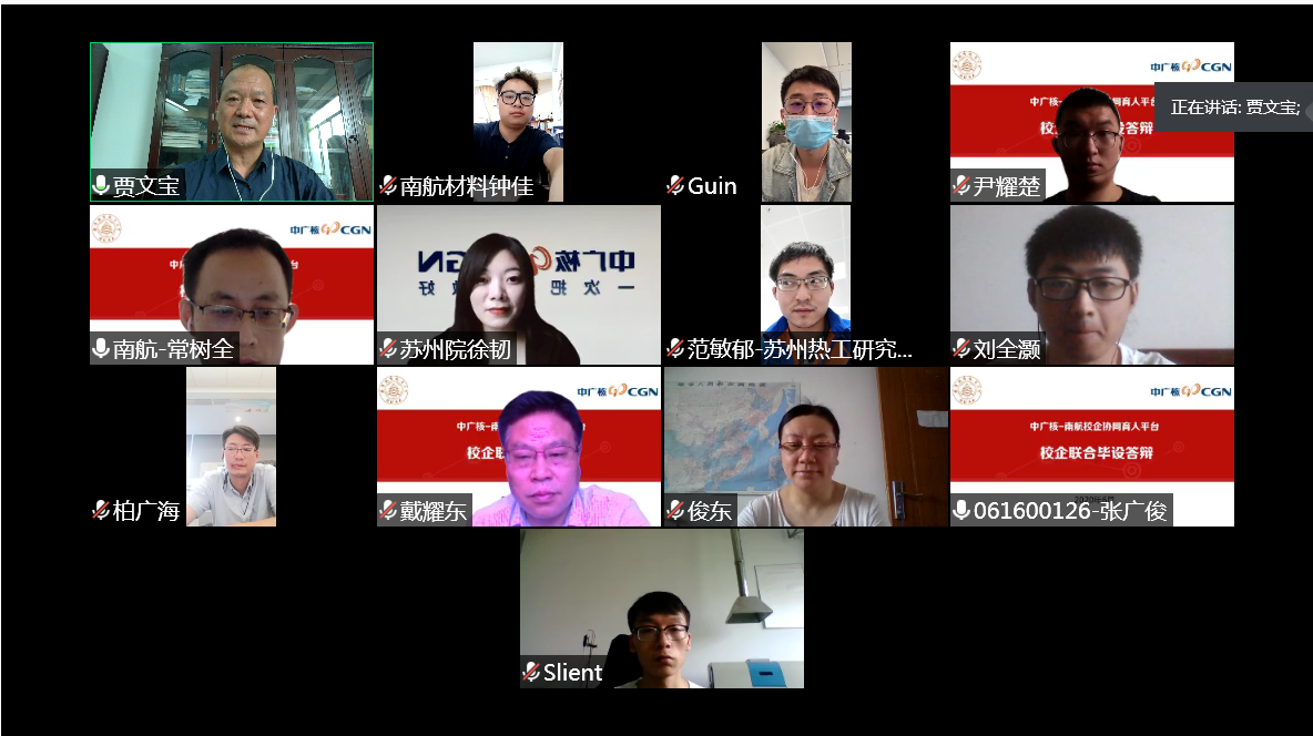中广核—南航校企协同育人平台校企毕设项目是学校与企业旨在深化校企合作育人,探索创新型人才培养模式而开展的工程实践计划。毕设项目全部来源于企业的科研实验和实际生产,经校内导师老师和企业导师商讨后定题,保证了论文的工程实践性和前沿性。答辩会上,评审老师充分肯定了4名同学取得的成果,学生在校企双导师联合指导下,通过毕设项目研究,解决企业生产实际问题,锻炼了学生解决复杂工程问题的能力,也弘扬了“智周万物道济天下”的母校精神。