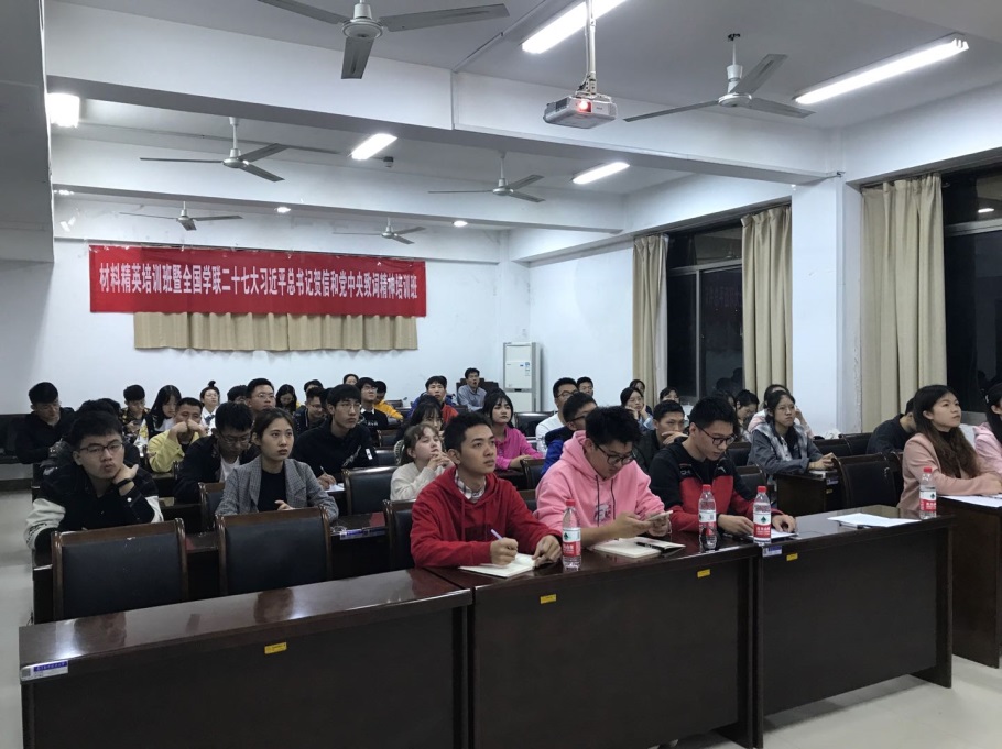 2020年10月18日,2020-2021学年材料精英培训班第一期于肉漫画 301会议室正式举行,本期材精班的主题是集中学习全国学联二十七大习近平总书记贺信和党中央致词精神。