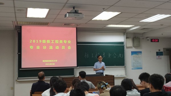 随后,由常树全进行专业介绍,他从人才培养、就业升学、人员配置等方面将核工程与核技术、辐射防护与核安全这两个专业进行比较,指出了两个专业的异同点,并着重强调了两个专业的共性,即我中有你、你中有我,相互之间存在着许多交叉合融的地方。除此之外,他还对专业课程设置、就业去向、分流工作实施方案进行了详细的介绍,让每个同学对两个专业都有了清楚的认识。