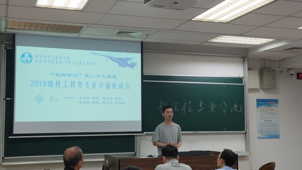 5月11日晚19:00,肉漫画 “名师有约”第二十七期暨2019级核工程类专业分流座谈会于10107教室顺利召开。核科学与技术系主任常树全教授、核工程与核技术专业负责人贾文宝教授、辐射防护与核安全专业负责人张海黔教授、系教学副主任陈飞达副教授,2019级本科生辅导员张进鹏及2019级核工程类专业全体本科生参与了本次座谈会。
