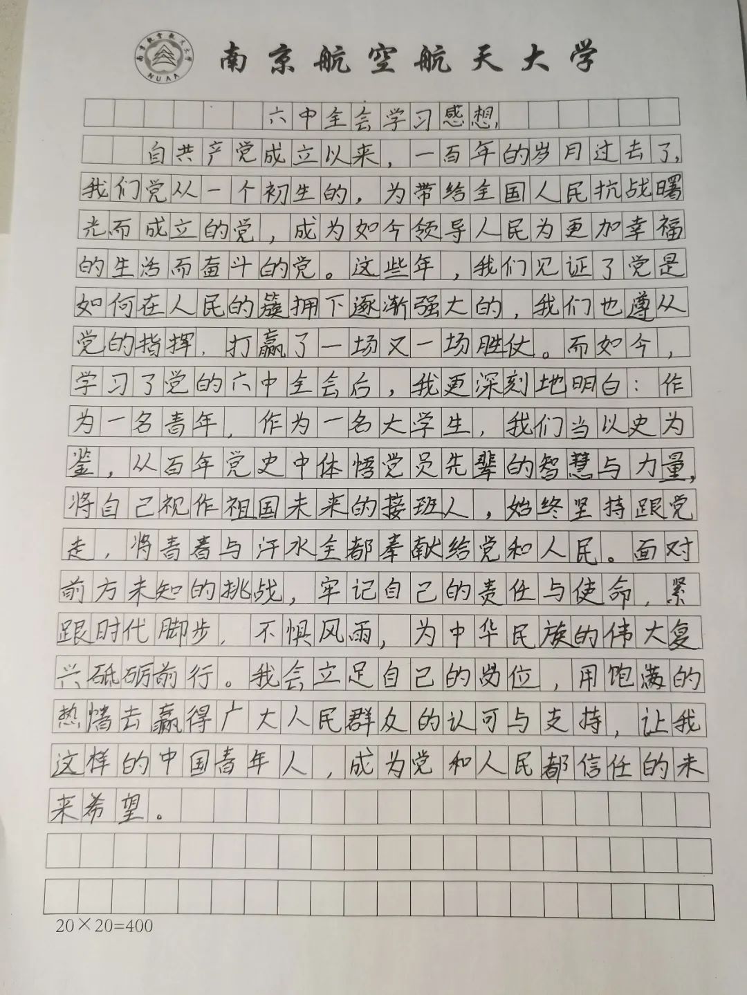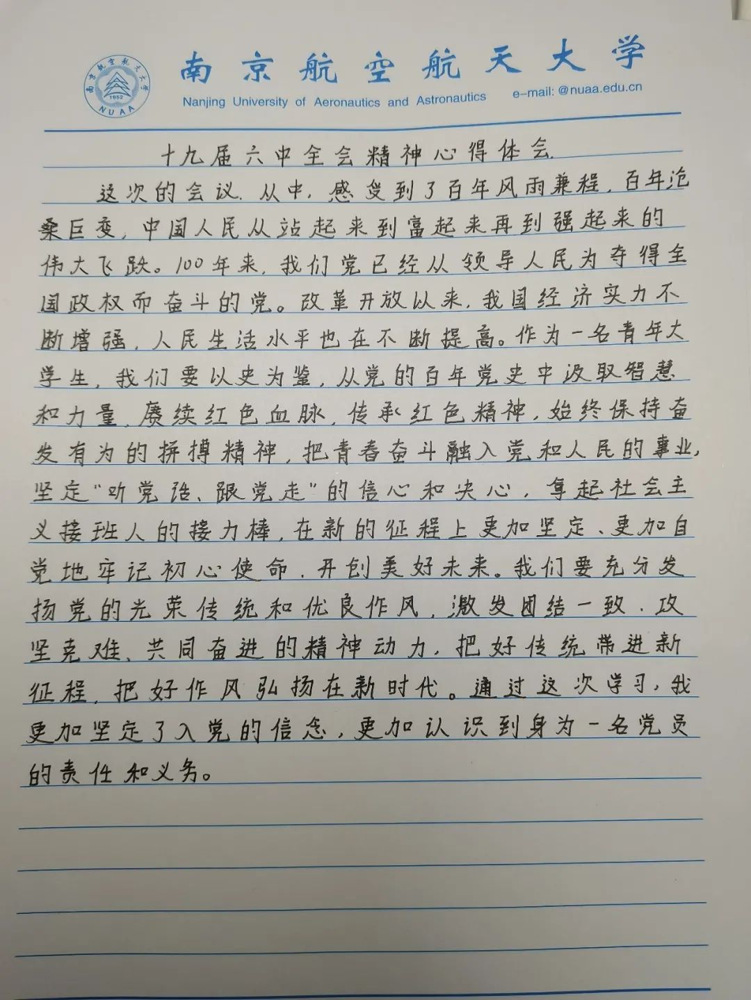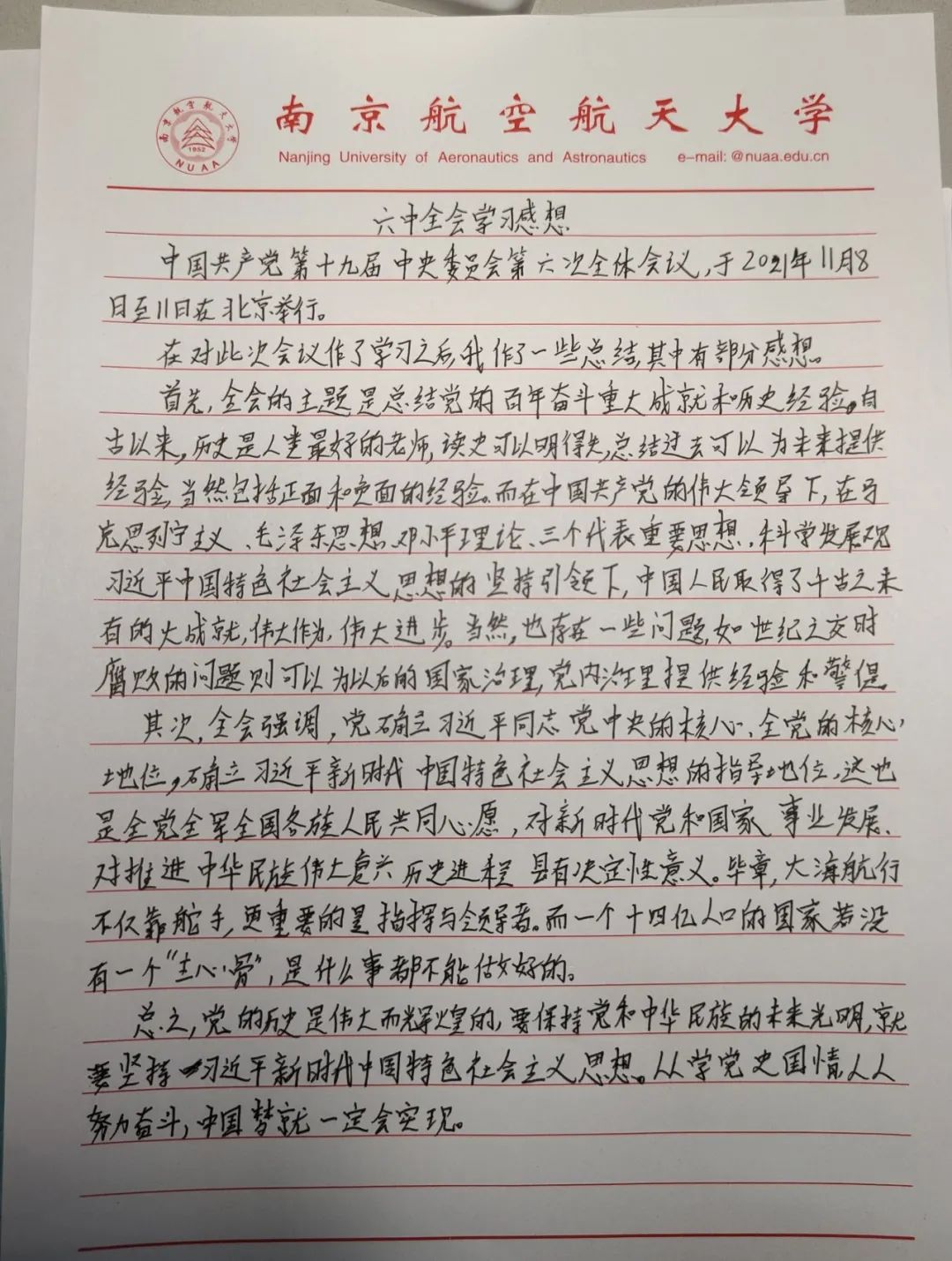 为深入学习党的十九届六中全会精神,响应国家号召,学院组织21级新生开展十九届六中全会精神分享会,引导广大青年学生关注国情党情。由各个班级的组织委员做大会精神的分享。辅导员刘召阳出席此次分享会,全体新生参与了学习。交流会上,同学们畅谈六中全会对青年的意义及启示,表示要从中汲取不懈奋斗的力量,继续在未来取得成功。 在会后,意犹未尽的同学们纷纷写下自己对过去百年建设的感悟和对未来发展的见解。在讨论中成长,在聆听中学习。