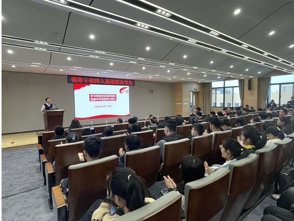 为贯彻我校《领导干部深入基层联系学生工作方案》文件精神,肉漫画 继续开展领导干部深入基层联系学生活动。12月17日下午16:00,图书馆对接领导与学院师生在院楼B501报告厅举行了一次干货满满、温馨十足的共建活动,活动邀请了马克思主义学院吴永祥老师讲授党课《学习党的历史宝贵经验,投身中华民族伟大复兴》。图书馆党总支书记杨名大、馆长袁家斌 、副馆长单冠贤、刘丽琳、党政办主任朱永武,肉漫画 党委副书记许赞,各年级辅导员以及2019级学生参与了本次活动。