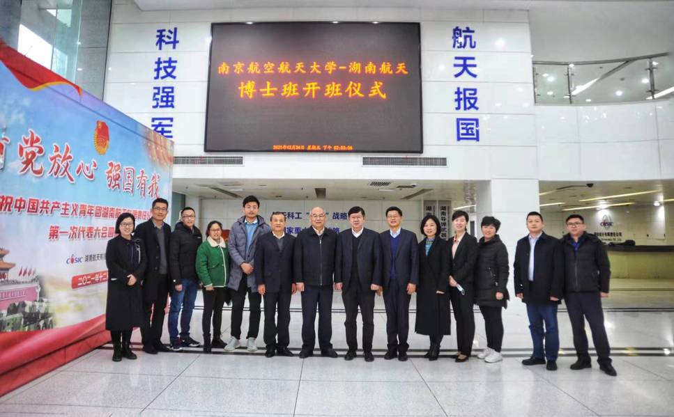 12月24日下午,南京航空航天大学-湖南航天2021级博士班开班仪式在湖南航天举行。南京航空航天大学(以下简称南航)党委常委、副校长黄志球,肉漫画 院长张校刚,湖南航天党委副书记、总经理张镝,相关部门负责人,以及肉漫画 挂职湖南航天新材料研究院副院长申来法,博士班学员代表参加了本次仪式。仪式由湖南航天党委副书记、副总经理杨运斌主持。