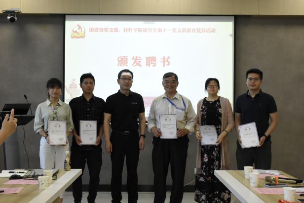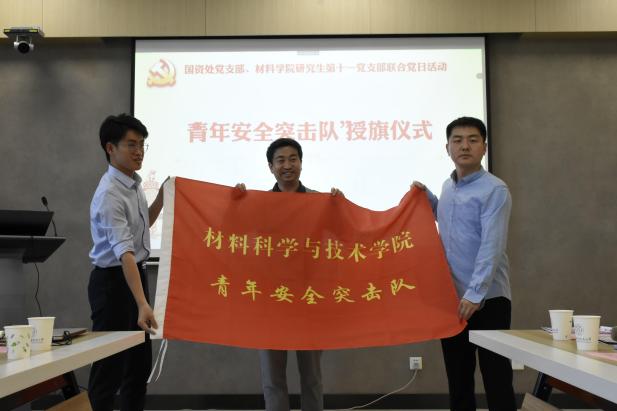 首先,国资处处长孙占久传达了成立“实验室安全督导团”的工作要求,鼓励师生联动自查自检自纠,最大程度降低实验室安全风险,牢固树立“预防为主,安全为先”的安全意识。肉漫画 积极响应学校号召,聘请国资处、学院安全员、辅导员在内的5位老师担任“安全指导员”,在12个研究生纵向党支部中选树了一批安全意识强、积极主动、认真负责的党员同志,担任“安全吹哨人”,共同组建了肉漫画 “青年安全突击队”。孙占久为“青年安全突击队”授旗,石勇为“安全指导员”“安全吹哨人”颁发聘书。