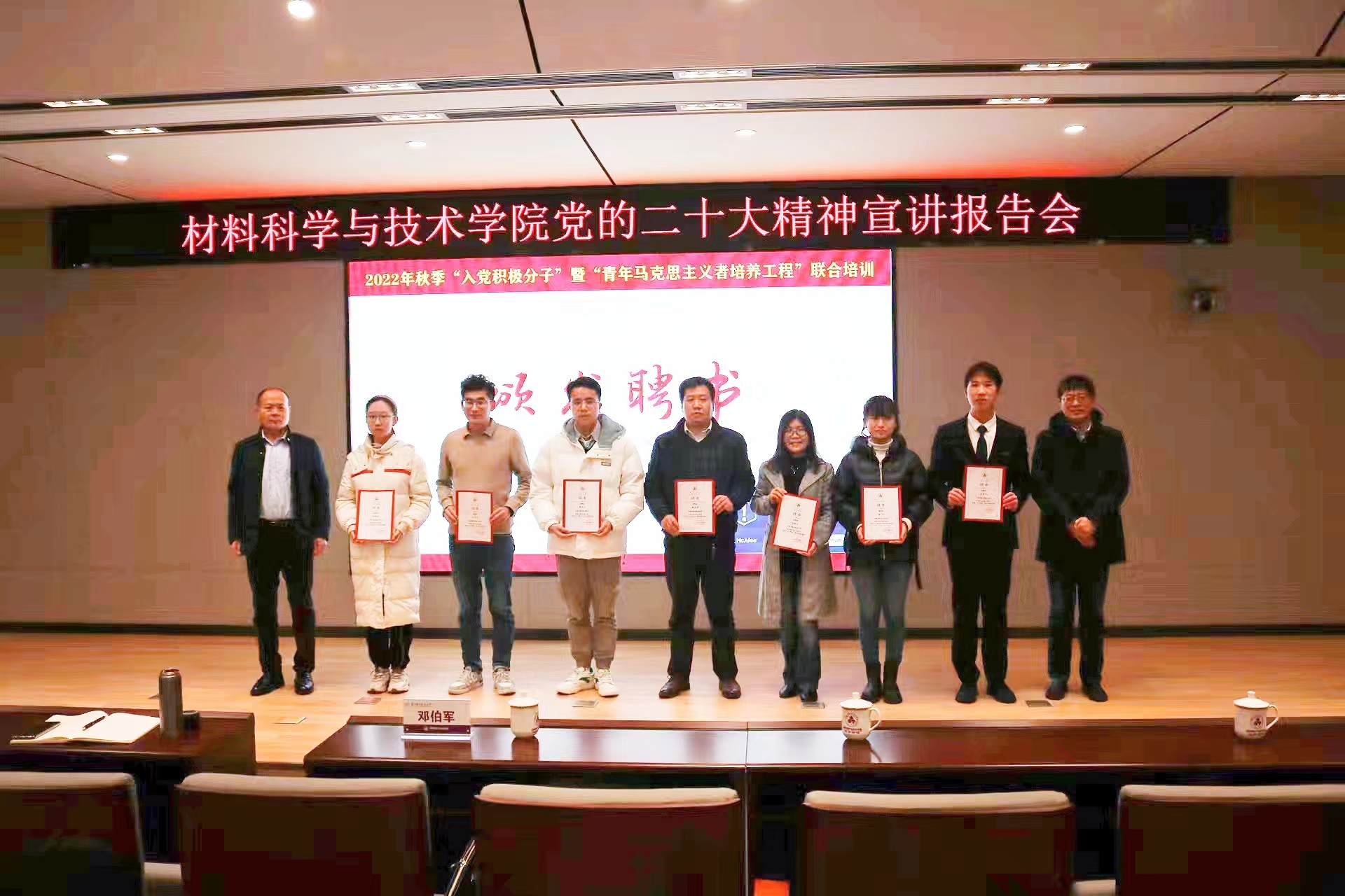学习宣传贯彻党的二十大精神是当前和今后一段时期内的首要政治任务,学院已通过中心组成员带头学、专家授课拓展学、学院之间联动学、模范师生分享学等多种学习形式,形成良好宣传宣讲氛围。学院成立一支由专业教师、辅导员和学生骨干组成的“党的二十大精神”青年讲师团,院长张校刚和邓伯军为青年讲师团成员代表颁发聘书。讲师团成员们将组织集中备课,面向学院师生开展接地气、有共鸣的宣讲,以师生们“听明白,能落实”的方式宣讲党的二十大精神,推动学习宣传贯彻党的二十大精神走深向实。