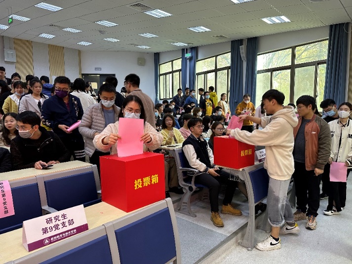 随后,按照组织程序,通过无记名投票的方式选举产生了新一届学生党总支委员会委员,大会在庄严的国际歌声中落下帷幕。