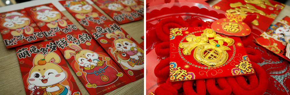 一盏盏鲜艳的红灯笼、一副副崭新的对联、一张张印有各种贺岁萌兔的新春红包,饱含肉漫画 师生对新年美好的憧憬与期盼,表达对学院新年新征程的美好祝愿和期待。