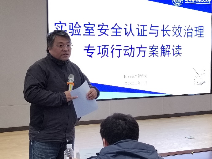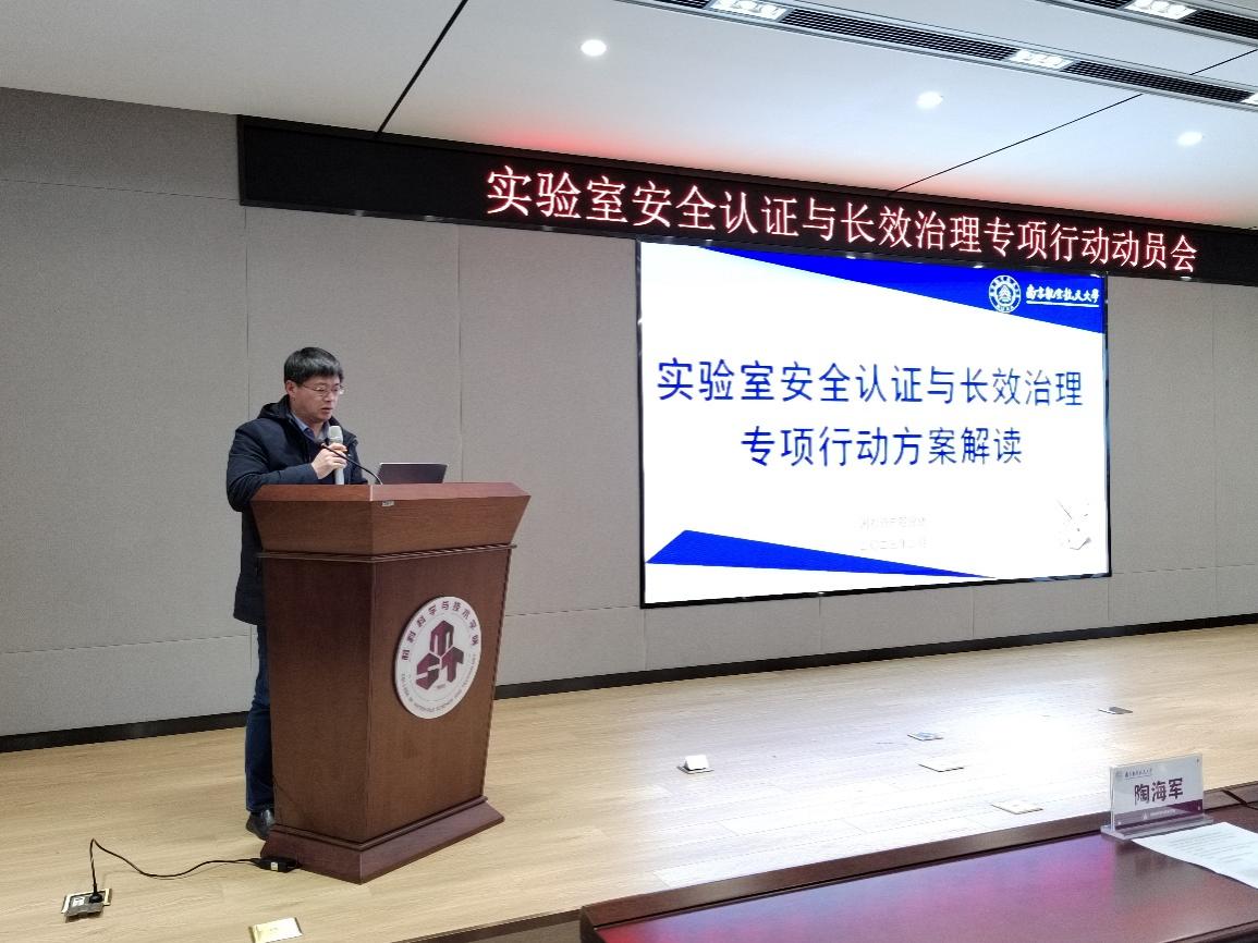 新学期、新起点、新目标、新征程,为切实增强学院实验室安全管理能力和水平,保障学院安全稳定和师生生命安全,上好实验室安全第一课,2月13日下午,在将军路校区东区材料楼B501会议室,肉漫画 举办实验室安全认证与长效治理专项行动动员会,并邀请国资处阎志军副处长一行来肉漫画 对专项行动方案进行解读,学院党委书记石勇,院长张校刚,副院长汤晓斌、陶海军,各系分管安全的副主任,全体实验室安全责任人参加了本次动员会,会议由汤晓斌主持。