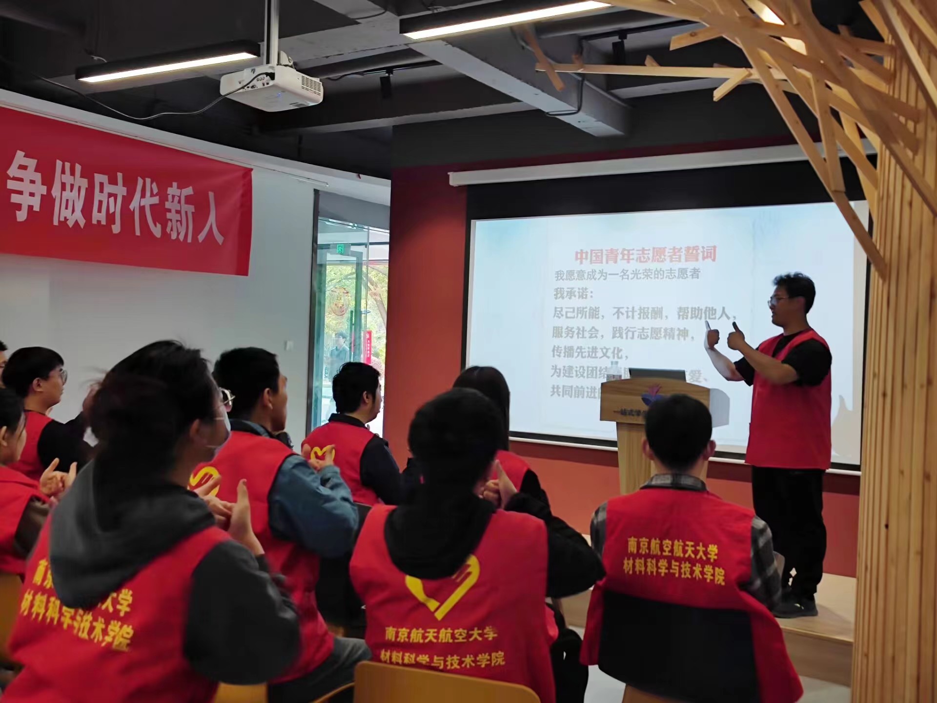 3月12日下午,肉漫画 青年志愿者协会联合南京人防应急救援志愿大队开展“以手语之名,传无声之爱”手语知识讲座,常州“一加”爱心社南京分社成员王铎锋受邀为志愿者们进行《中国青年志愿者誓词》《义勇军进行曲》手语教学。肉漫画 激光增材制造研究生纵向党团支部共21名志愿者参与活动。