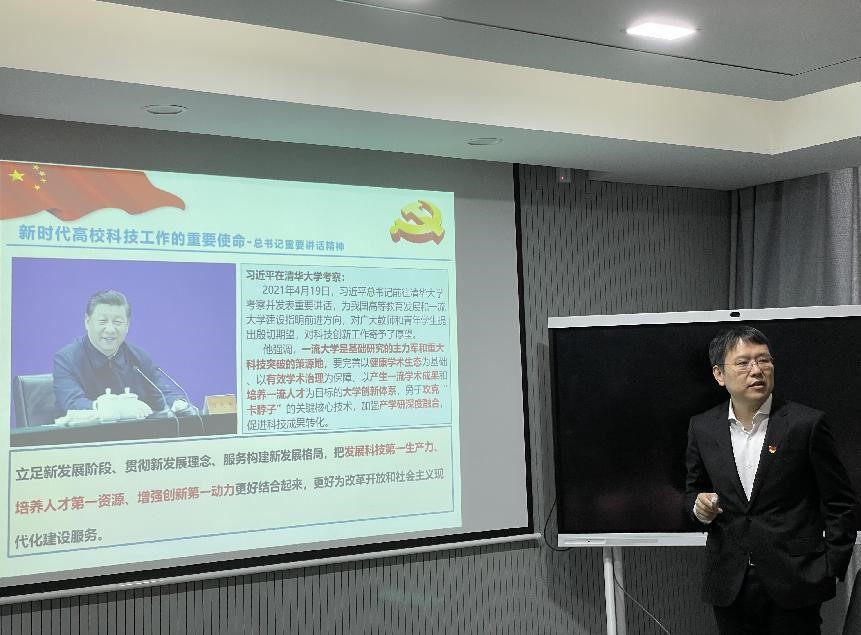 院长顾冬冬领学习近平总书记在中央政治局第三次集体学习时关于切实加强基础研究夯实科技自立自强根基的重要论述。他指出,加强基础研究是科技创新的源头,是新时代高校科技工作的重要使命,是实现高水平科技自立自强的迫切要求,是建设世界科技强国的必由之路。他还重点结合学习就如何推动学校“理科卓越工程”深入实施,如何加快基础学科融合发展和学院联动发展分享了自己的思考和展望。