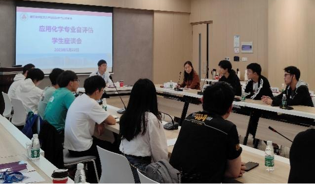 随后,与会考察专家参观了实验室,并分组进行教师座谈、学生座谈和教学材料检查。教师座谈会由石礼伟主持,教师代表们畅谈了应用化学专业在招生质量、课程建设、课程质量评价体系与问题持续改进举措等方面的成效,明确了学科建设中的问题与挑战。学生座谈会由胡兴邦主持,学生代表们积极发言,就培养方案、理论与实验课程的设置、教学质量等方面的成效和未来的改进举措方面进行了深入交流,在对专业表示高度认可的同时也提出了自己的期待。专家们就专业建设过程中的问题与挑战分享了自己的经验与体会,引起了在座教师和学生代表的强烈共鸣。专家组还分别对应用化学专业核心课程、实验课程、毕业设计等进行了检查。基于以上现场考察环节,专家组进行研究与讨论,并最终形成评估意见。