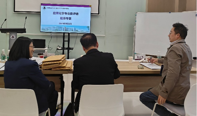 应用化学专业自评估专家组现场考察工作顺利开展。专家组由南京理工大学化学与化工学院副院长钟秦、南京大学化学化工学院应用化学专业负责人胡兴邦、中国矿业大学教务部副部长石礼伟、以及校电子信息工程学院/集成电路学院副院长张小飞及校督导组成员冯晓梅组成。参加本次现场考察工作的还有校教师发展与教学评估中心主任杨兰芳、校教务处副处长张炜、教师发展与教学评估中心副研究员孙彩云,学院党委书记石勇、院长顾冬冬、学院党委副书记庄晓舒、副院长陶海军、应用化学系主任常焜、应用化学系教师代表、学生代表及教学办工作人员。