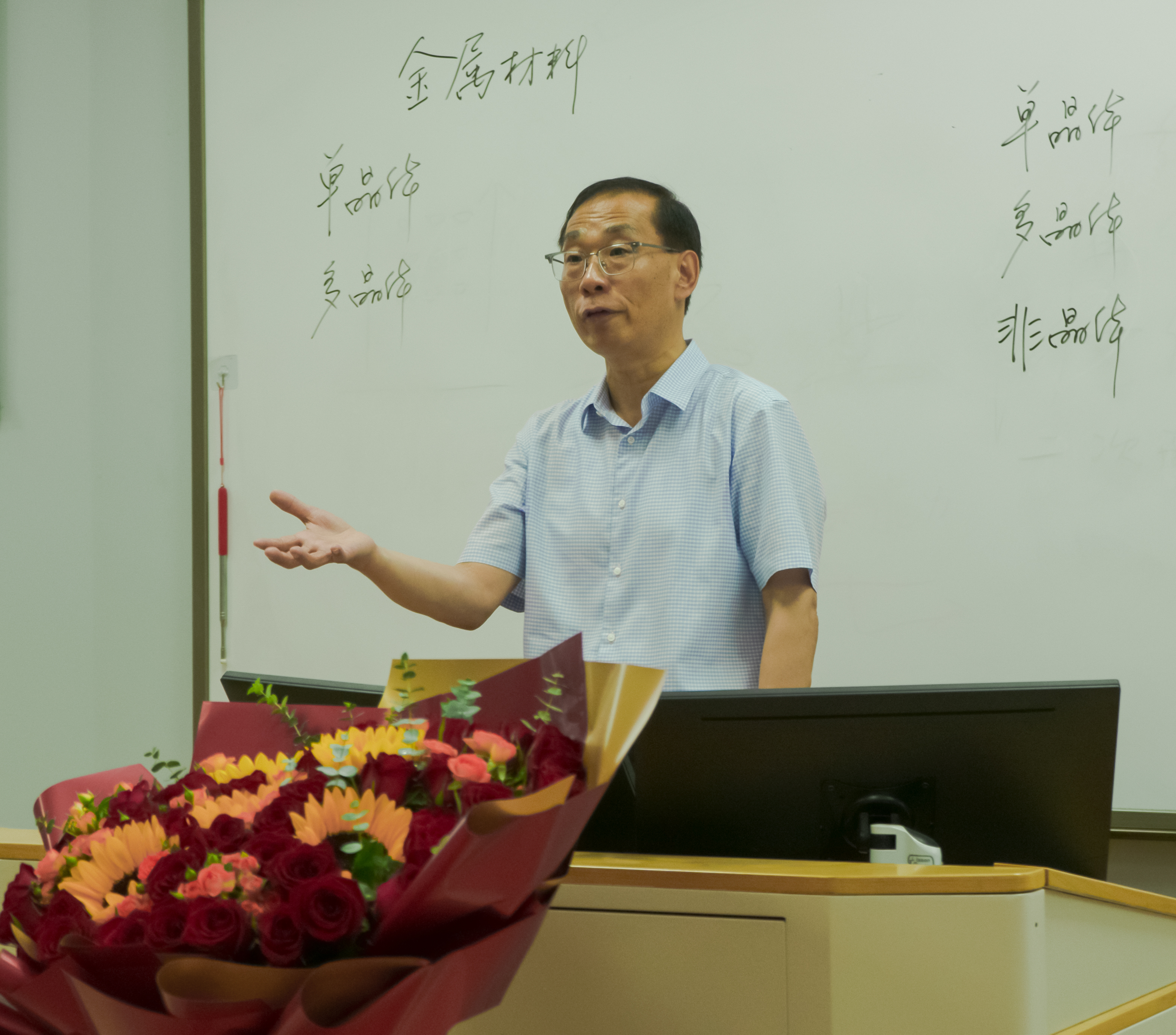 石勇代表学院表达了对陶杰教授的诚挚祝福和对其为学院和材料学科发展所做重要贡献的崇高敬意,并指出青年教师应以陶杰教授为立身标杆,倾全部心血教书育人。他指出学院的师生不仅能在陶杰老师身上学到专业知识,还有为学、为事、为人的道理。他强调,全院师生要牢记陶杰教授在建院时就凝练的院训“大气奉献,求实创新”,坚定初心,砥砺前行,并希望陶杰老师荣休后继续关心、支持学院的发展。