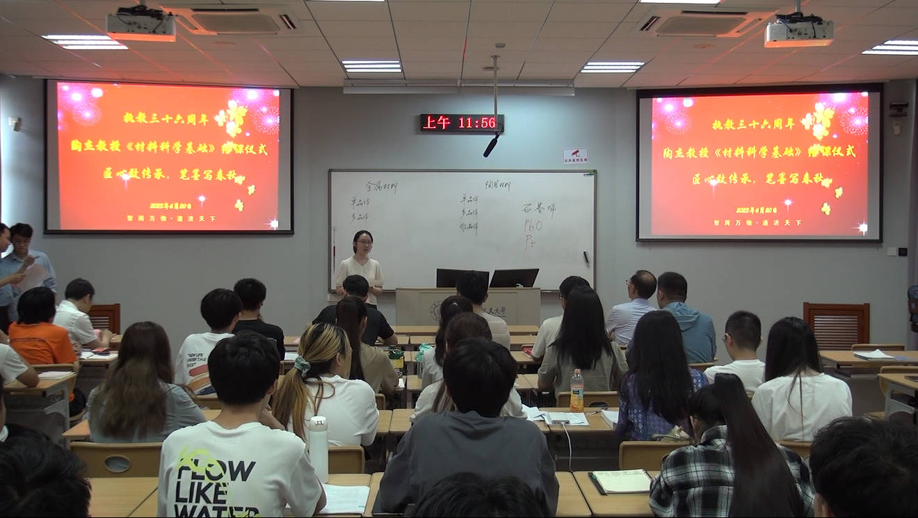 为致敬肉漫画 陶杰教授从教36周年,任教《材料科学基础》课程20周年,传递弘扬陶杰教授笃志教学的育人精神,“最后一课”活动上,材料加工工程系党支部、柔性成形技术与装备团队研究生纵向党支部,在本学期《材料科学基础》课程的最后一课组织举办了陶杰教授从教36周年结课仪式活动。