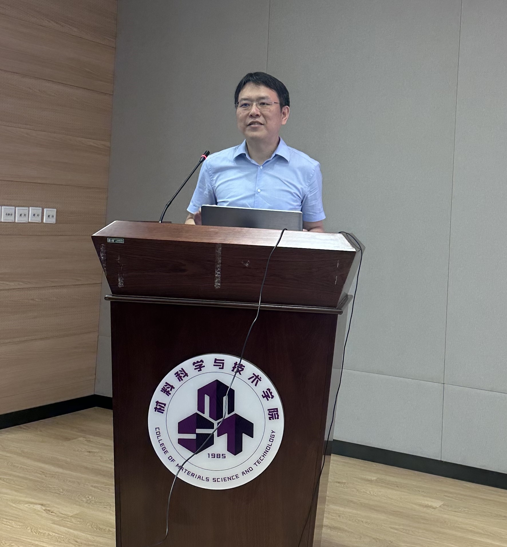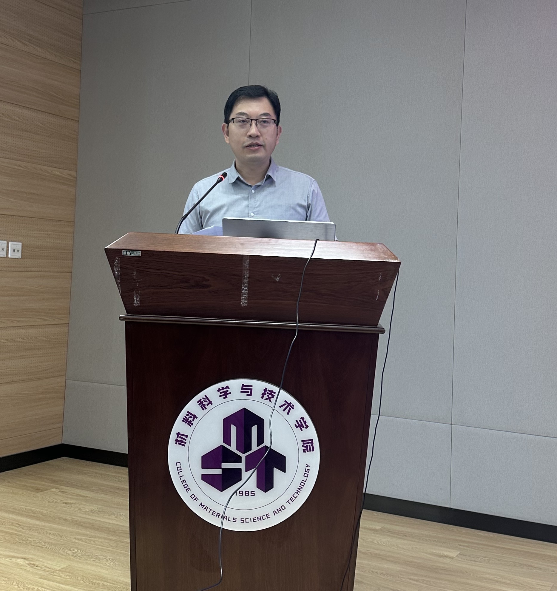 顾冬冬作了以《材料为基、人才为本,特色交融、成长成才》为题的报告,从师资队伍、国际合作、人才培养、科学研究等方面介绍学院基本情况,强调南航的材料学科是具有“三航”特色的材料学科,希望同学们努力拼搏,有所作为。