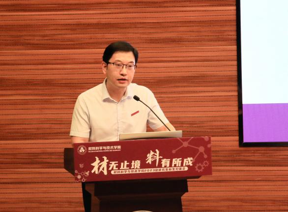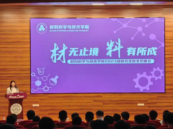 2023级直博生庄智淇作为新生代表发言。他表示,作为南航材料学子,要善学笃行、勇于求索,在研途新征程中勇攀科研高峰,努力担负起“材料强国”的时代使命。