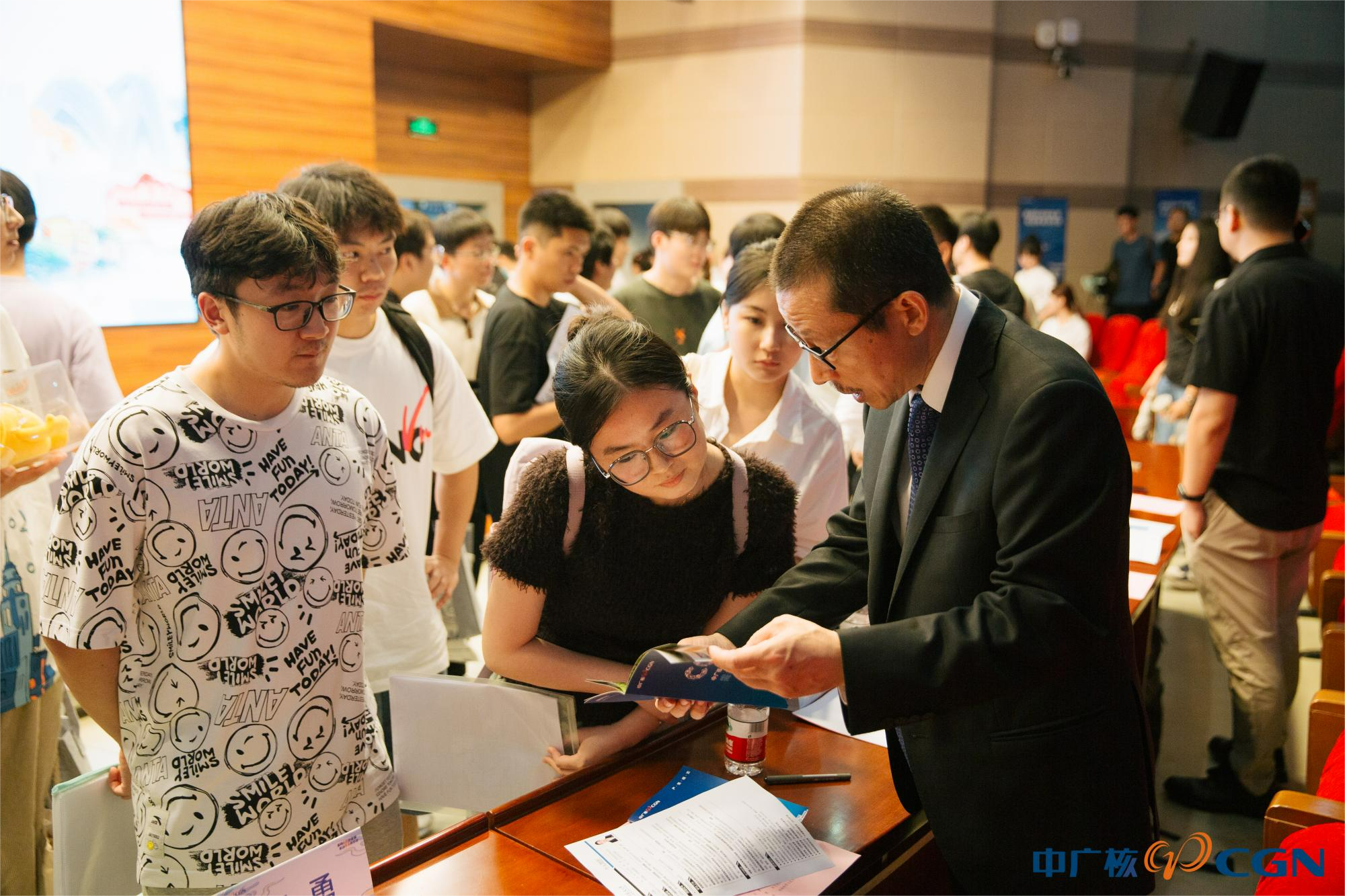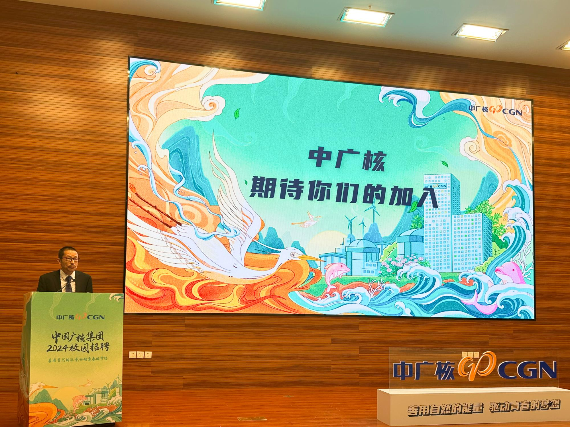 9月15日晚,中国广核集团(以下简称:中广核)2024校园招聘宣讲会在将军路校区一号楼四楼报告厅举行。校党委副书记刘宇雷出席宣讲会,中广核阳江核电有限公司党委副书记、南航87届校友叶志强,苏州热工研究院人力资源部主任、校园招聘南京组领队梅林,我校学生处处长王静、副处长王霄,肉漫画 党委书记石勇、党委副书记庄晓舒、副院长常树全及400余名学生现场参会。