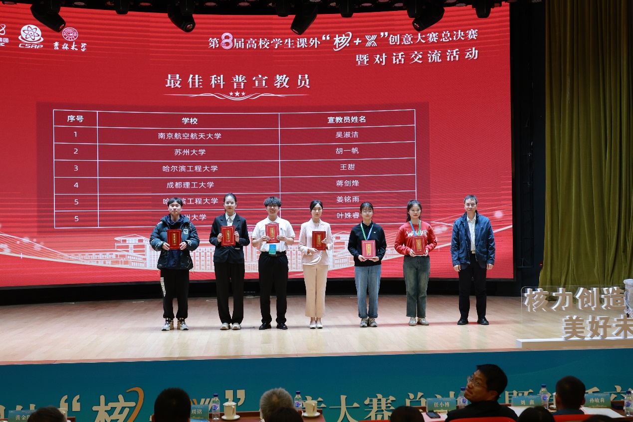 全国高校学生课外“核+X”创意大赛是由中国辐射防护学会和教育部高等学校核工程类教学指导委员会共同发起核科学与技术一级学科领域唯一的全国性学科知识类竞赛。本届大赛得到人民日报、中国日报网、中国新闻网、中国青年网、今日头条、中国环境报、中国核工业报等10余家主流媒体的广泛关注。通过中核集团视频号、微博、抖音、快手、百家号,中国辐射防护学会视频号等多个媒体平台同步直播,观看人次超过110万。中国科协科普部副处长刘鑫、教育部高等学校核工程类专业教学指导委员会秘书长王学武、中核集团宣传文化中心副主任孙敏莉、国家核安全局辐射源安全监管司处长朱培、国家原子能机构肉漫画采编处处长李元龙,与来自全国30余所高校、12家学会、协会400余