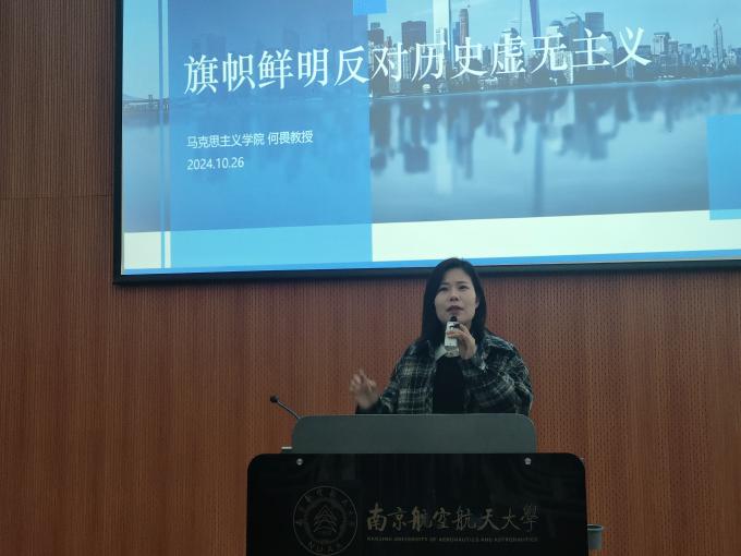 第一场专题辅导报告由马克思主义学院党委书记何畏教授主讲《旗帜鲜明反对历史虚无主义》,何畏从“何谓历史、玄机何在、错在何处、意欲何为”四个方面,深入剖析了历史虚无主义的本质和危害。她结合个人经历与见解,生动阐述了人民群众作为历史创造者的伟大作用,强调了每位同学都应旗帜鲜明反对历史虚无主义,积极加强思想引领与理论辨析。