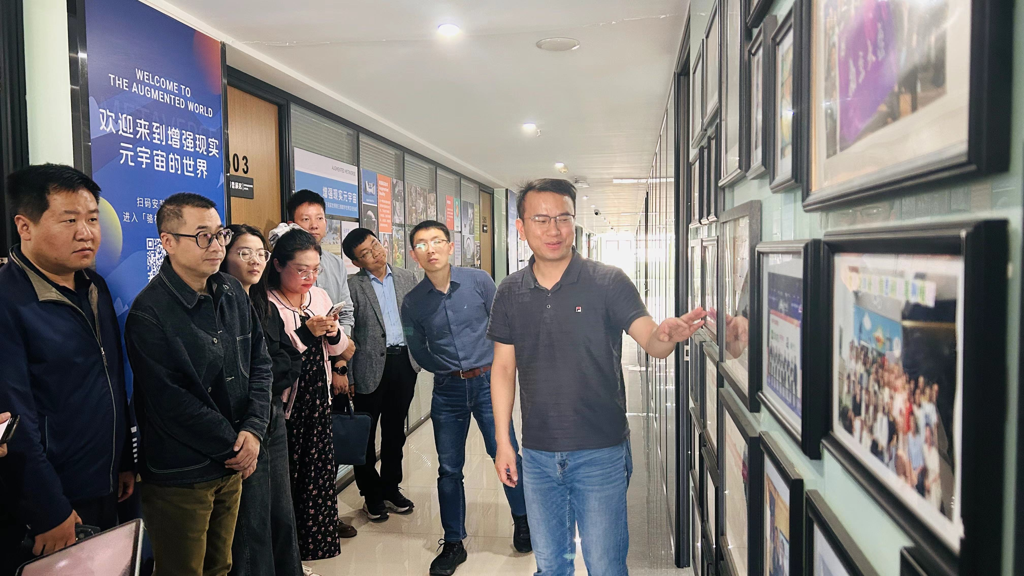 随后,张帅介绍了南京增强现实元宇宙科普教育中心,展示了增强现实元宇宙在教育培训、图书出版、展览展示及文创商品领域的应用。还带领大家参观了元宇宙展览中心,沉浸式学习了最新的AR技术和应用场景,各位老师获得了将虚拟数字信息叠加到真实环境中从而达到虚实相合的超现实感官体验。