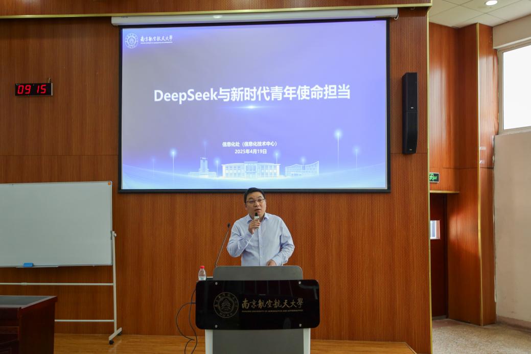 培训首场报告,校信息化处处长张鹏应邀作《DeepSeek与新时代青年使命担当》专题培训。张鹏介绍了大语言模型的发展历程及内在机理,展示了DeepSeek等大模型在文本生成、逻辑推理等方面的卓越能力,以DeepSeek创始人等新时代青年科技工作者为例,阐述了青年一代如何将个人理想融入国家发展大局,在科技创新中勇攀高峰,担当起新时代的使命。他强调,技术革新是青年担当使命的“加速器”,新时代青年既要钻研学业知识及技术工具,更要将其转化为服务国家战略、破解实际问题的能力。