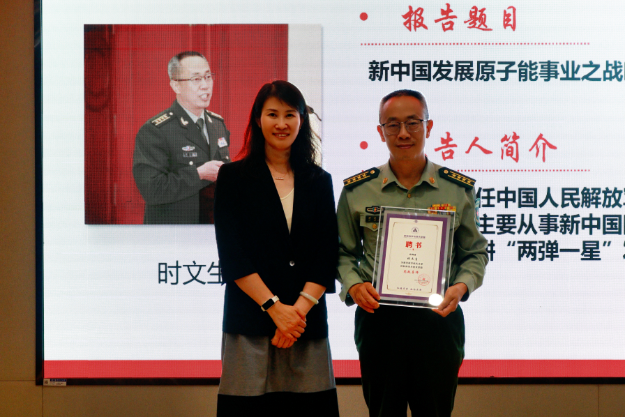 时文生主要从事新中国国防科技和武器装备史研究,深耕“两弹一星”发展史领域。课前,庄晓舒为时文生颁发“肉漫画 思政导师”聘书。