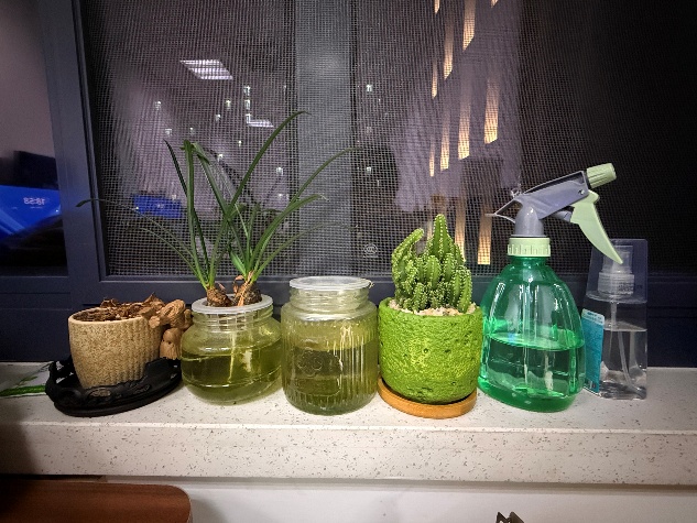 我的工位主打“实用+治愈”,双屏联动提升效率,粉粉嫩嫩的键盘配着森林壁纸,软乎乎的坐垫和鼠标垫缓解久坐疲惫;水培兰草和仙人掌负责净化空气,累了就看看它们,让我在忙碌里也能拥有一份松弛感。