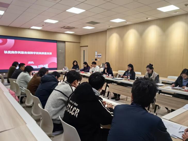 为深入学习贯彻习近平总书记关于加强党的作风建设的重要论述,持续推进机关作风建设走深走实,进一步提升学院机关服务效能和治理水平,2026年1月19日,学院邀请学校机关党委书记焦宏图为学院机关作风建设作专题辅导报告。报告题为《以优良作风服务保障学校高质量发展》。学院党委书记张亚丽主持讲座,学院机关及学工全体工作人员参加学习。